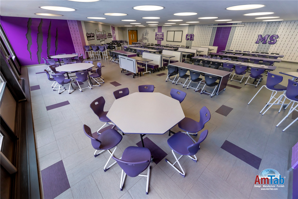 From custom wall graphics to table designs, AmTab’s® signage, graphics, and decor solutions turn K–12 dining commons into vibrant, student-centered environments. Designed with purpose, these visuals help tell a school’s story, strengthen pride, and create spaces where students feel connected.