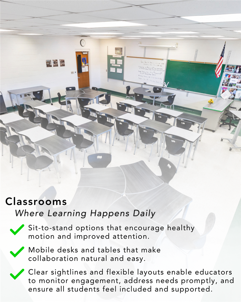 From classrooms to courtyards, cafeterias to media centers, every space tells a story. A modern learning environment is a purposefully designed ecosystem where educators are empowered, and students are inspired to explore, create, and grow every single day. Here's a breakdown of every element that makes it possible. 👇